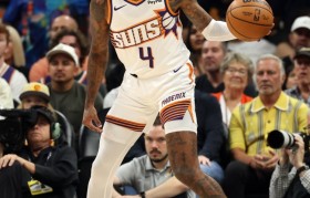 1月21日讯 NBA常规赛,太阳半场57-53领先76人。上半场,太阳后卫杰伦·格林迎来复出表现不俗...