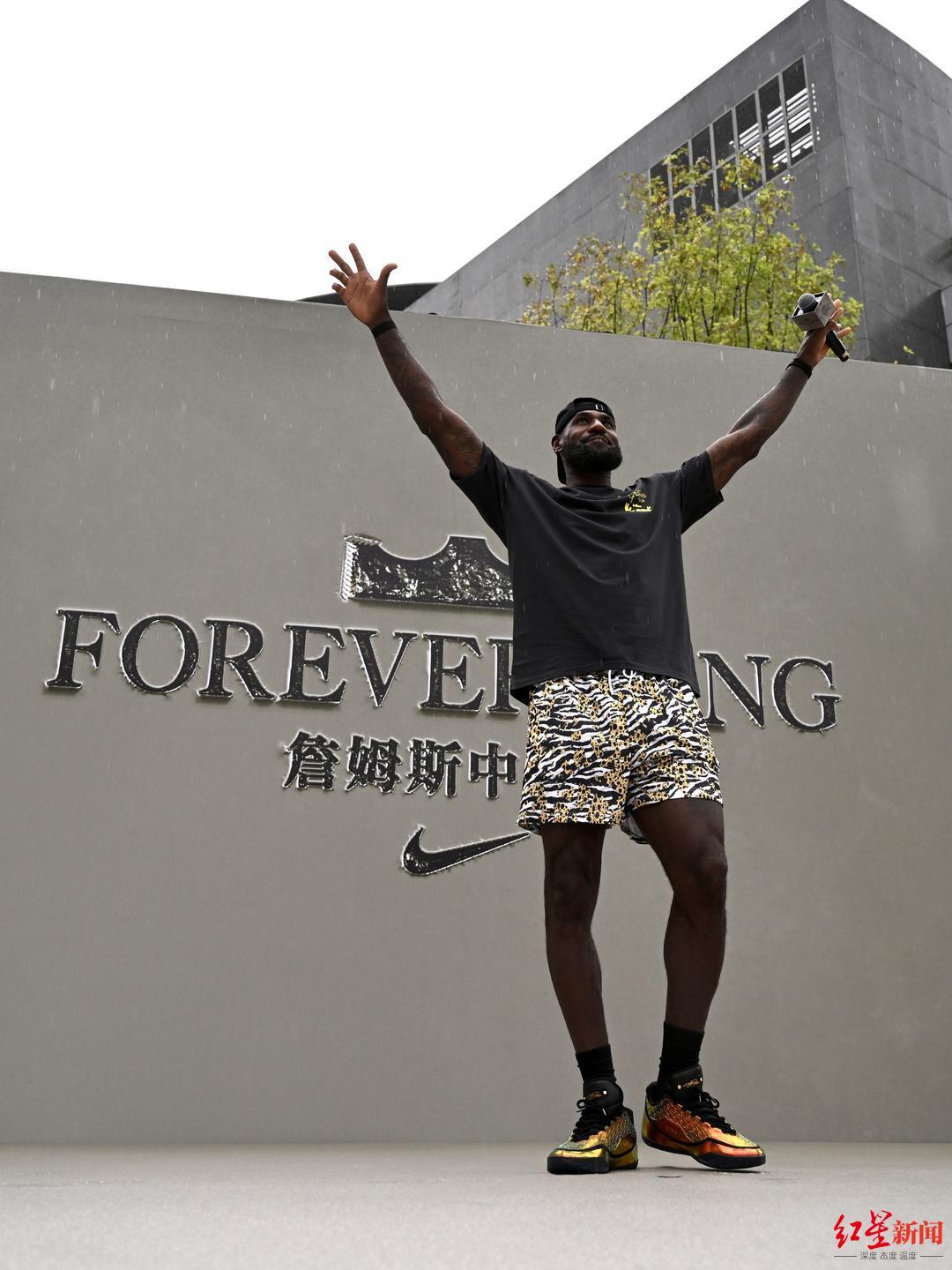 由于接下来詹姆斯还有多项行程安排,所以与外场球迷们的见面只持续了几分钟,但也让大家感觉不虚此行。尤其让球迷们感动的是,詹姆斯看到大家在雨天还来到现场支持他,他在台上也扔掉了手中的透明雨伞,选择和球迷们一起淋雨。